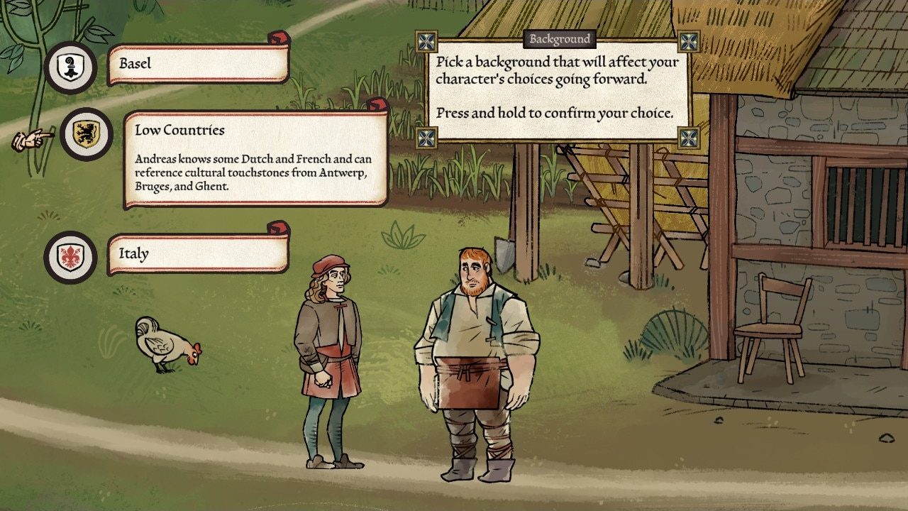 There are other ways in which Pentiment conveyed a plurality of historical realities. Aspects of Andreas’ background – for example, where he might have spent his Wanderjahre – are left to player choice. This allows players to perform a variety of different historical realities, more or less equally plausible for a man of Andreas’ social stature from Nuremberg at this time. In doing so, Pentiment not only informs its audience of its historical setting, but allows players to create their own interpretation within that setting. Pentiment’s ability to hold the tension between multiple historical realities, then, encapsulates these specific nuances of historical interpretation more than I’ve (yet) seen in another game.